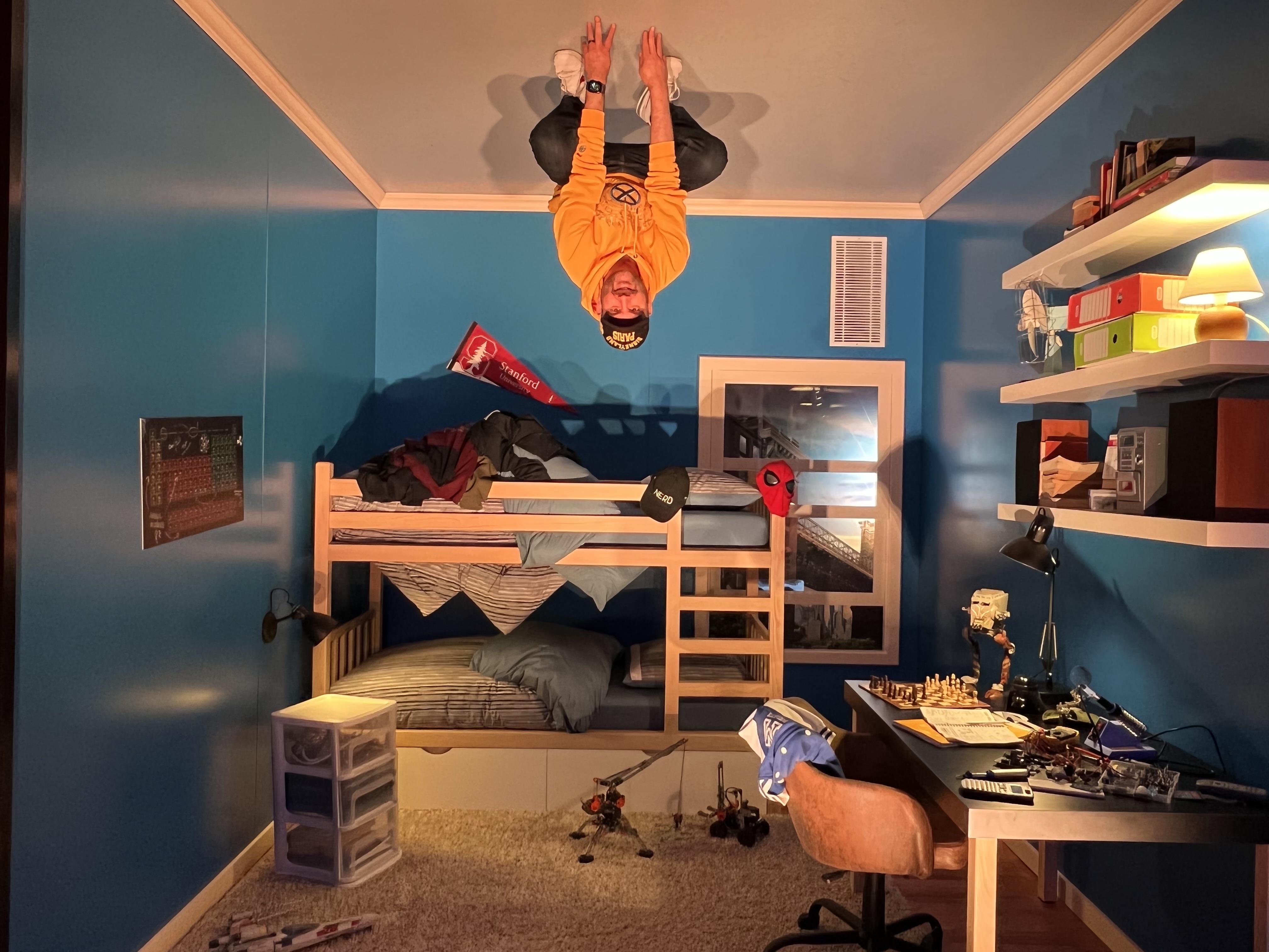 The Hotel extras include a Super Hero training area where we enjoyed playing basketball, there are indoor and outdoor gyms and a swimming pool with staff on hand to loan you a ball, or point you to the swimwear vending machine. There is an outdoor pool which I am sure is well used during the warmer months. There is an art class aimed at the younger guests and there is an exclusive Superhero Station which includes Spiderman meet and greet with an official Disney photographer (when Avengers Campus opens presumably the Spiderman stuntronic and meet and greet will be available there?) after you meet Spidey there are several scenes and props to take pictures with, these are areas where you use your own camera, however there are clear instructions and guides to help you take the perfect shot. These scenes include the mirror dimension, Peter Parker’s bedroom, Mjolnir, the final battle from Endgame, the Quantum Tunnel, the Hall of Armour, the Collector’s dungeon and even a scene in space so whoever your favourite hero is you have your chance to be them for a moment or two.