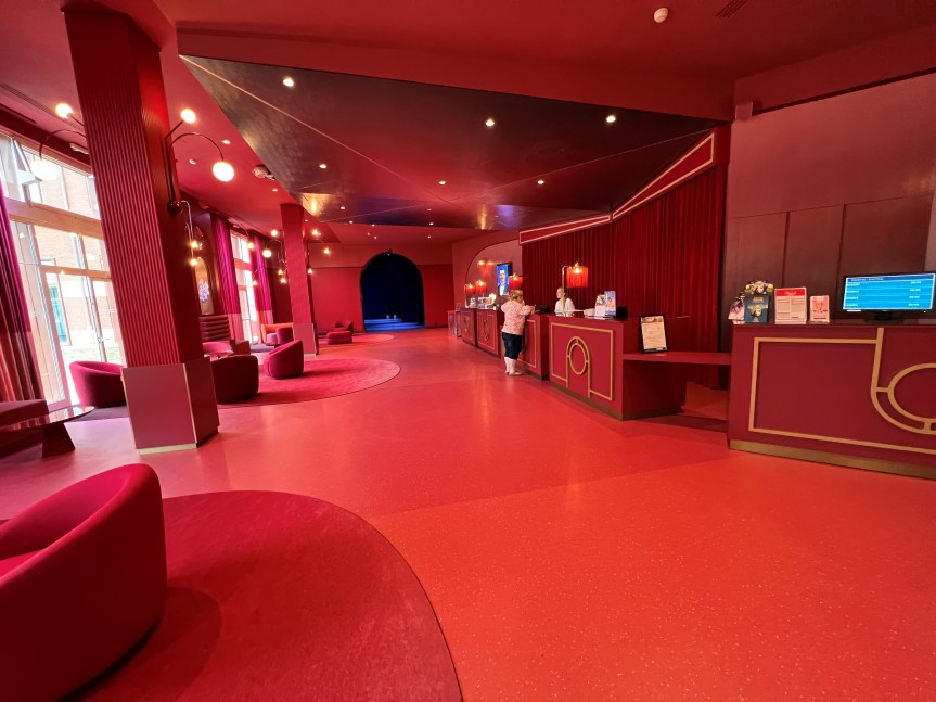 On arrival at the hotel you are presented with a bright red revolving door which transports you from the outside world to the beautiful red reception area. This feels like a reference to the classic red big top circus tents and it looks breathtaking and feels spacious and luxurious. Older guests may suspect they are in the Twin Peaks Black Lodge but maybe this is me? Check in is a simple process and reception staff are welcoming and helpful. Details include a white rabbit lamp and a portrait of a magician/ringmaster hangs alongside the reception, you will be forgiven for thinking he has winked or smiled at you because he does… come alive. Clearly inspired by the paintings in Hogwarts the picture moves and it really starts to sell what’s in store at the Magic Circus.